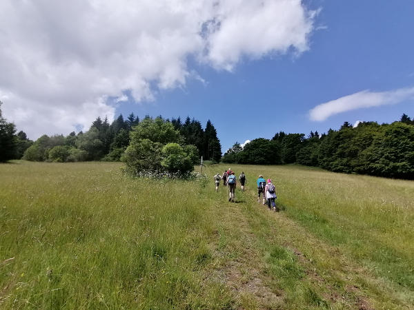 Unterwegs genießen wir weite Ausblicke sowie die besondere Atmosphäre dieser einzigartigen Mittelgebirgslandschaft, die um diese Jahreszeit in voller Blüte steht.